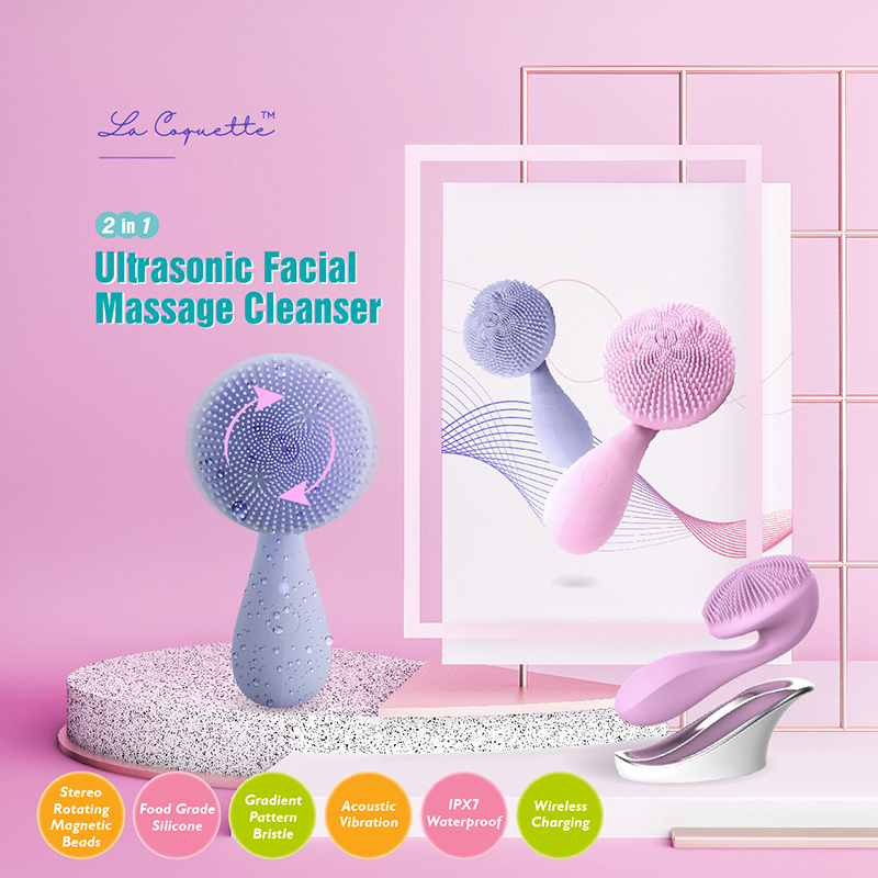 This facial cleansing device equips with the latest sonic vibration technology and rotating magnetic bead system.