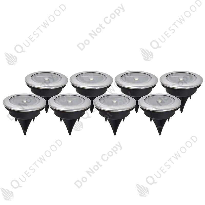 8 PACK STAINLESS STEEL SOLAR LED MINI DISK LIGHT